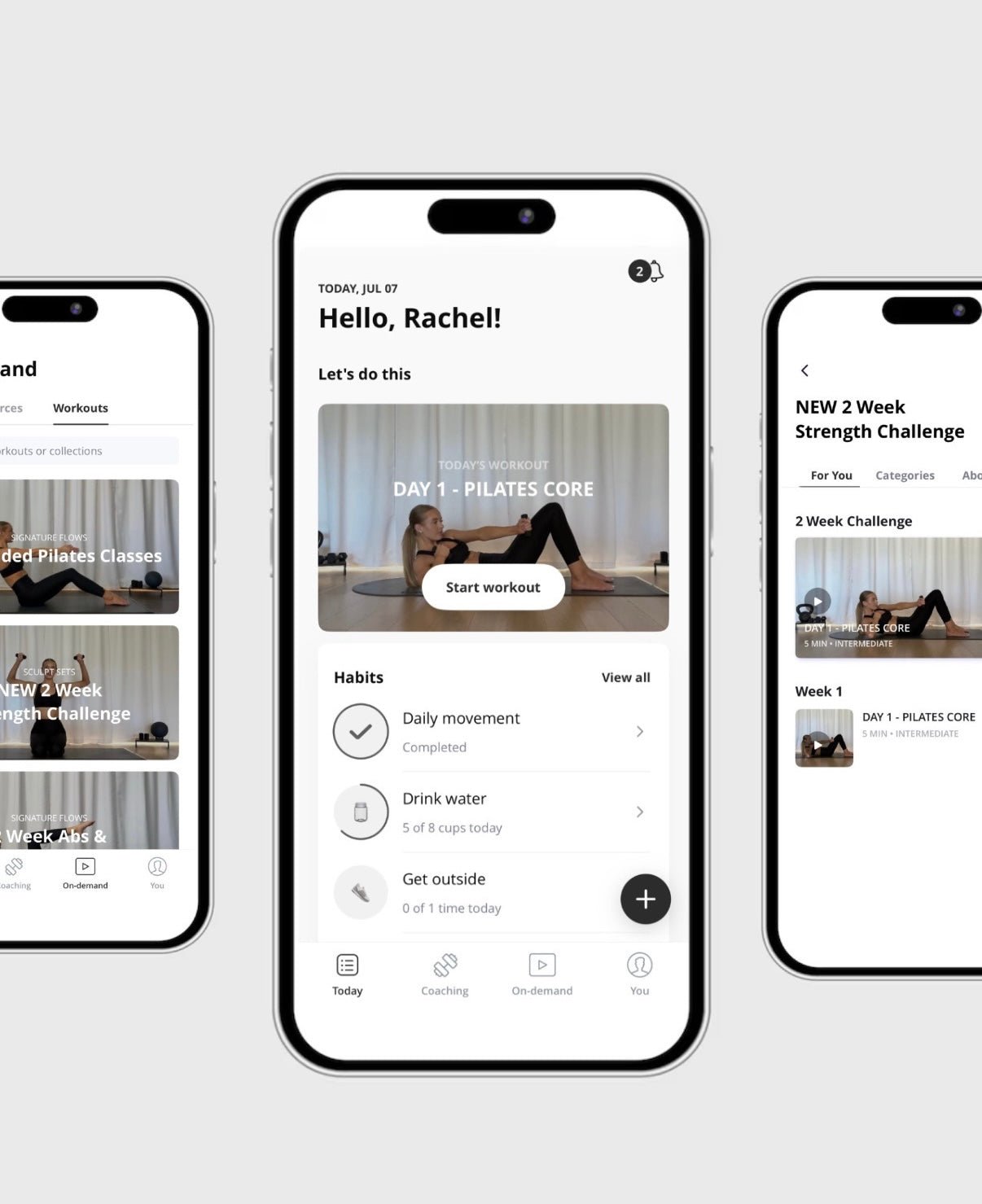 The RA Pilates app makes it easy to incorporate daily movement and healthy habits into your routine with engaging guided Pilates challenges, efficient at-home workouts, curated in-person events, progress tracking tools, an inspiring community, and more. Accessible from anywhere, these wellness tools will help you to strengthen your body, improve your energy levels, and reach your fitness goals wherever you are.